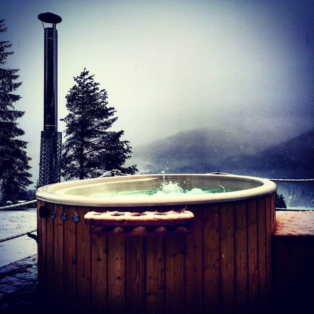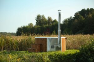 - Badefass aus Holz mit Innenmaterial aus Fiberglas;