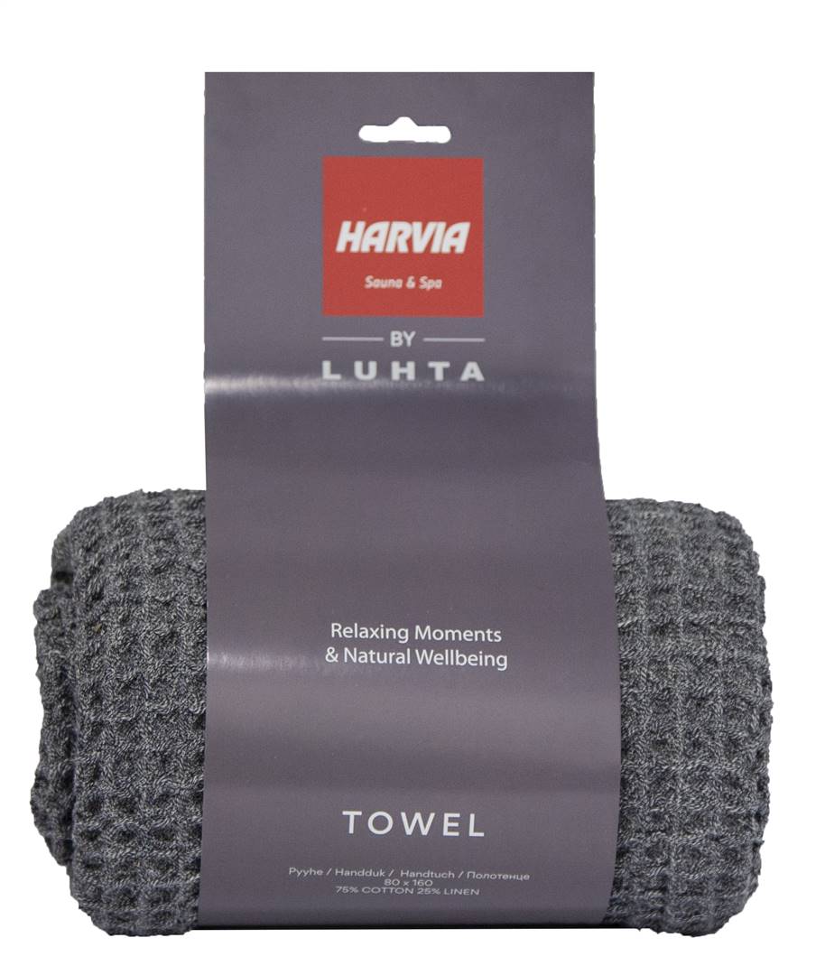 Pratico ASCIUGAMANO PER L’USO SPECIFICO IN SAUNA (75% cotone e 25% lino) appositamente realizzato da Harvia by Luhta per i cultori della sauna che intendono fruirne nella massima comodità.