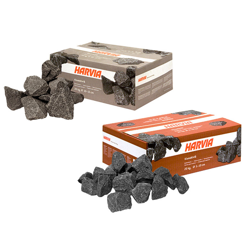 Le PIETRE SAUNA HARVIA sono disponibili in confezioni da 20 Kg. e due diverse pezzature: