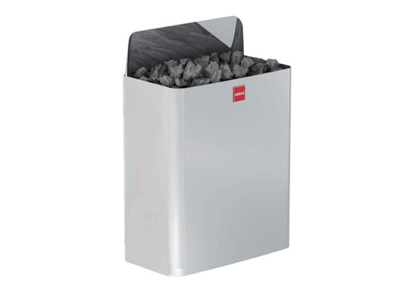 La stufa HARVIA mod. THE WALL versione SWE è estremamente elegante e curata nei dettagli. Concepita per saune di medio/piccole dimensioni e per utilizzi intensi garantisce il raggiungimento delle massime temperature in breve tempo. Ha un carter in acciaio inox lucido dalla caratteristica forma squadrata con un convogliatore di calore posto sul retro della stufa ad evitare l’annerimento della parete retrostante la stessa. Come per la maggior parte delle stufe HARVIA, il montaggio è estremamente semplice e rapido ed avviene attraverso l’ancoraggio della stufa direttamente alla piastra supporto a parete (in dotazione). La capacità massima delle pietre peridotitiche è pari a 20 Kg.