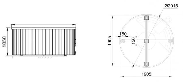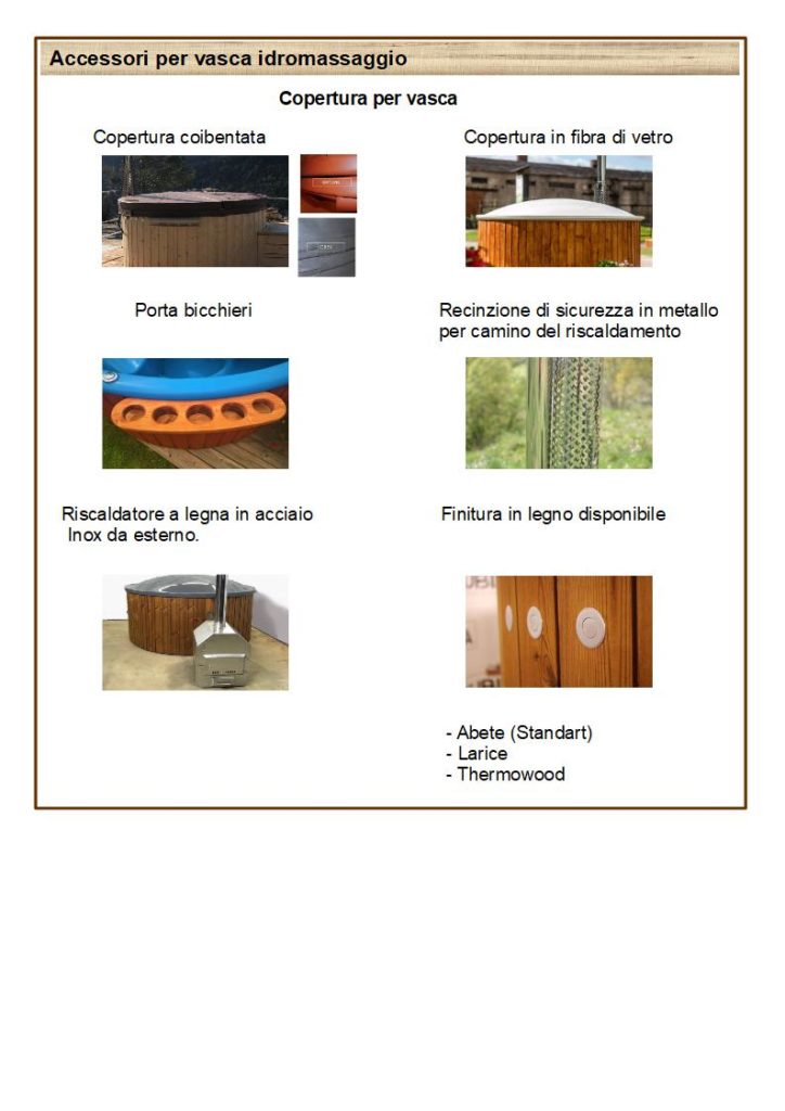 - Vasca con struttura in fibra di vetro con finitura in legno;